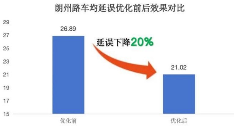 朗州路经过优化车均延误下降超20%,平均车速提升25%。