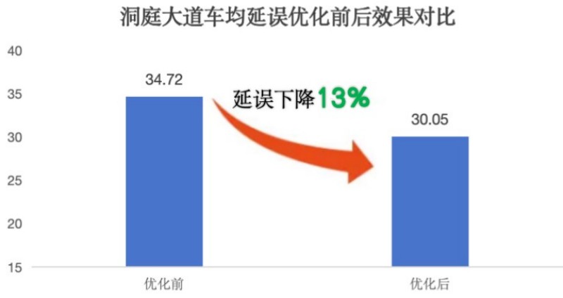 洞庭大道车均延误下降13%,平均车速提升18%。