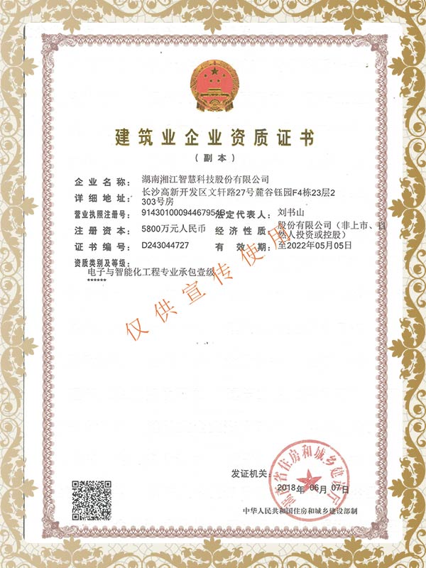 经公司同仁的努力,我公司原建筑智能化三级资质于2016年5月30日通过住房和城乡建设部门审核并公告,并于7月8日颁发了建筑业电子与智能化工程专业承包二级资质。