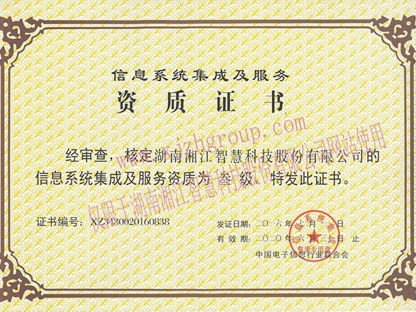 同时,2016年7月1日,公司信息系统集成及服务资质通过中国电子信息行业联合会审查,升级为信息系统集成及服务三级资质。